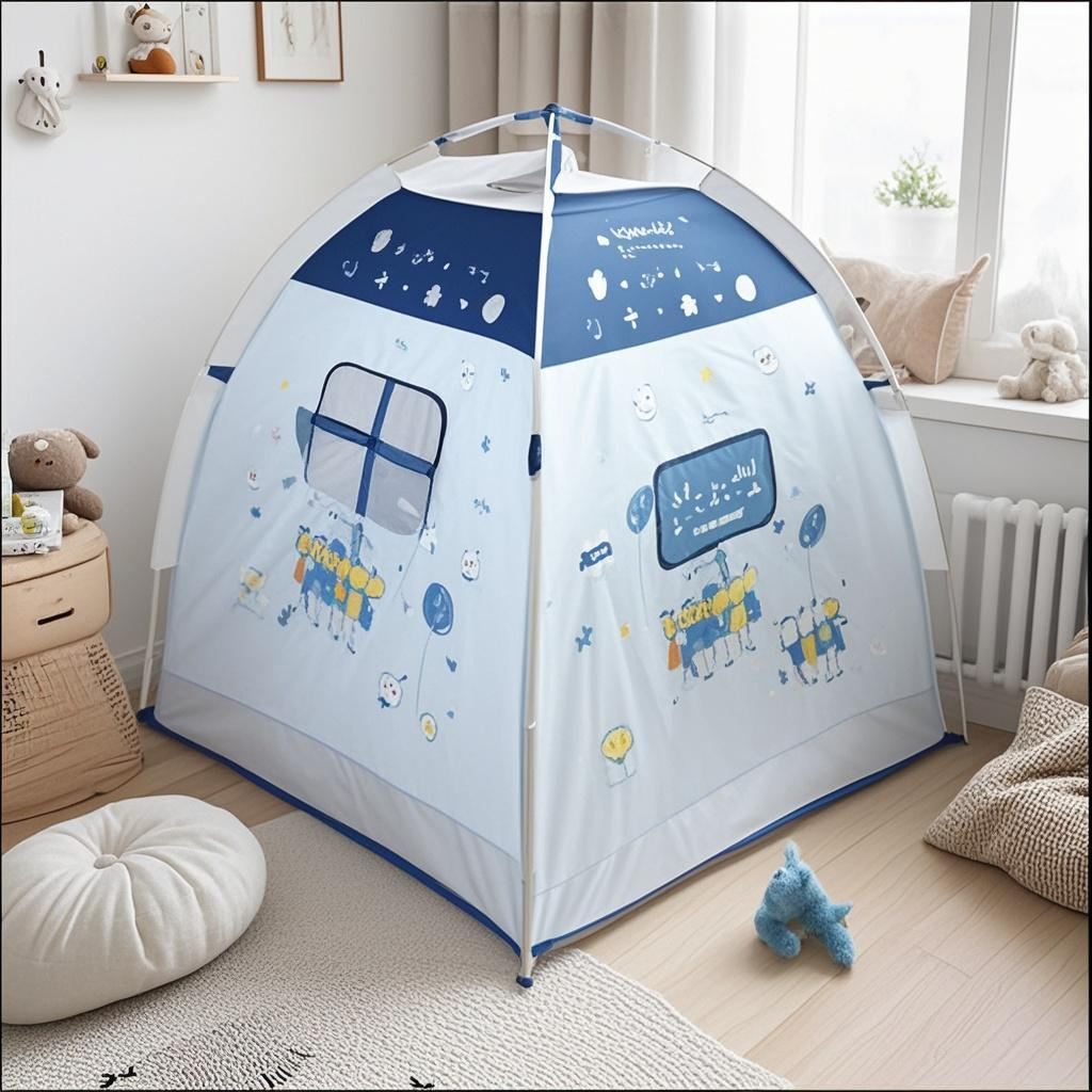 As a professional textile OEM and ODM manufacturer, we excel in producing such high - quality play tents. The tent features a charming design with a combination of blue and white, adorned with lovely patterns like stars, hearts, and cute animals, which are highly appealing to kids. Made from premium textile materials, it is durable, safe, and comfortable. The spacious interior can accommodate pillows, stuffed toys, and provides a cozy nook for children to play, read, or imagine.